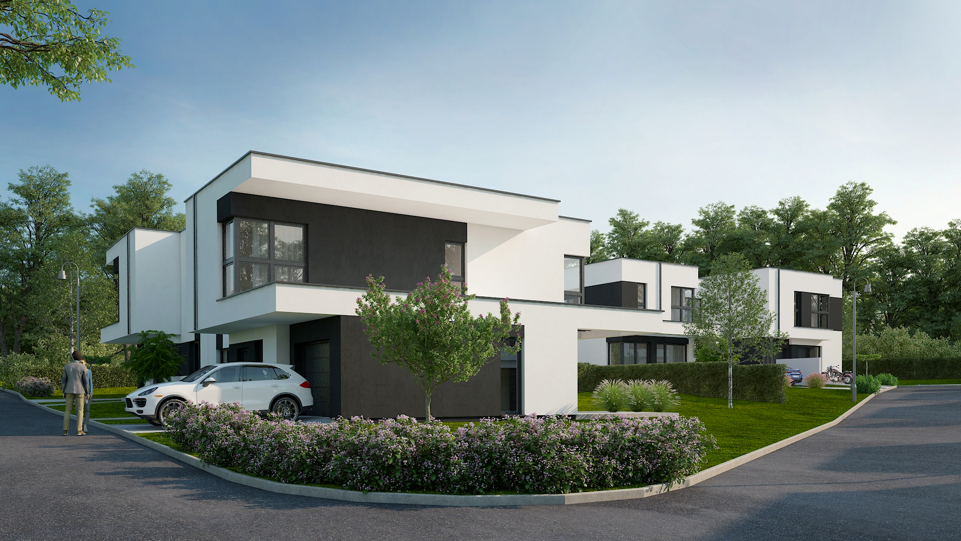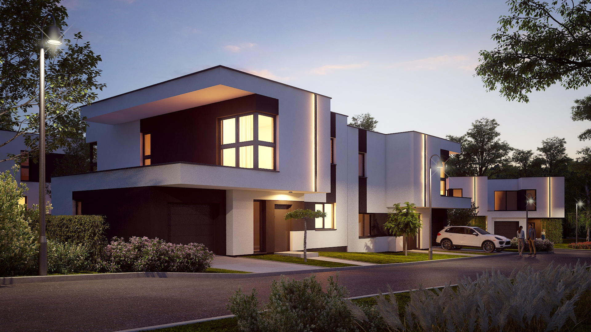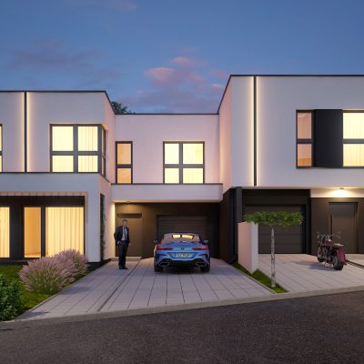 Dodajmy do tego wysublimowane wzornictwo, rozkłady pozwalające mieszkać niezwykle wygodnie oraz bardzo duże przeszklenia, a tworzy nam się obraz miejsca niezwykłego. Przewidzieliśmy również całościowe ogrzewanie podłogowe w każdym z domów, a także pompy ciepła jako źródło ogrzewania, czyli większe bezpieczeństwo energetyczne oraz bardziej ekologiczna energia.