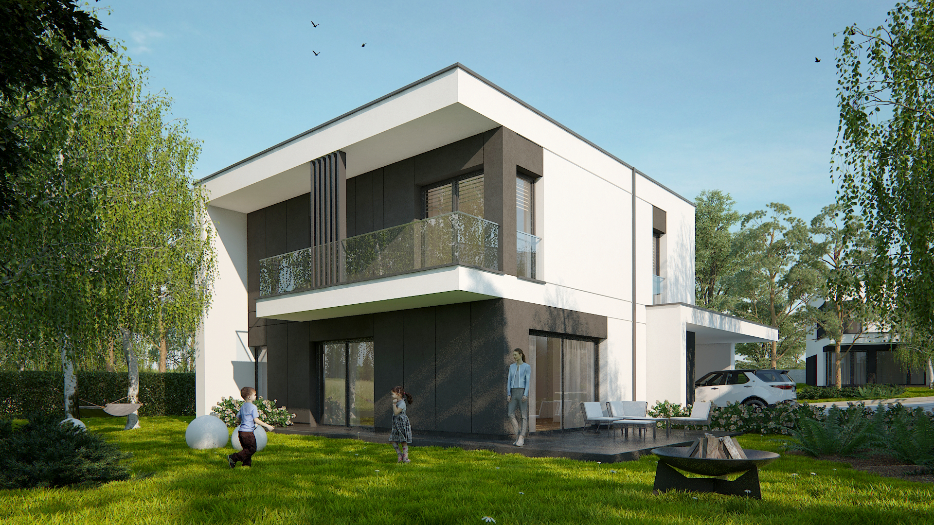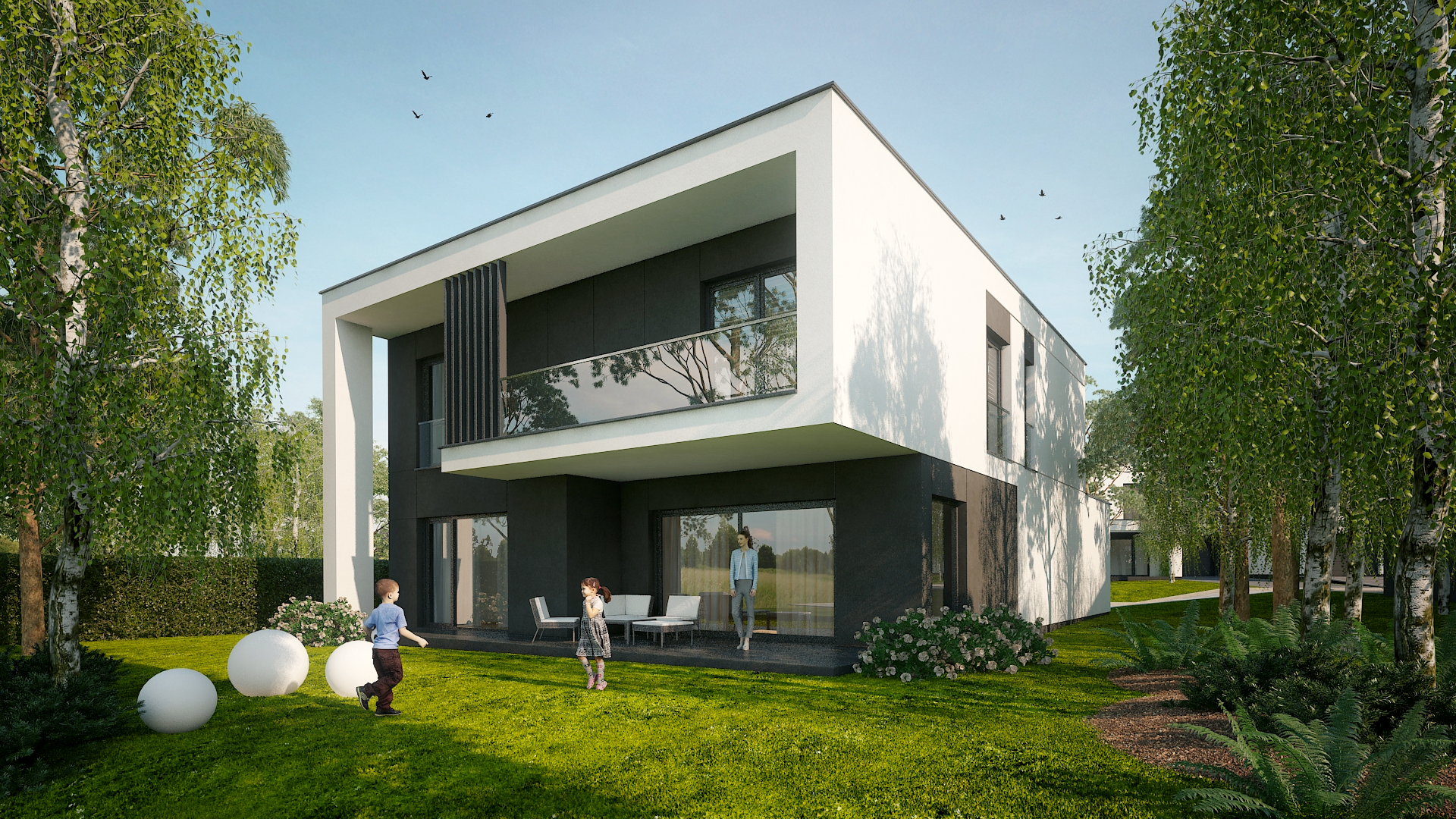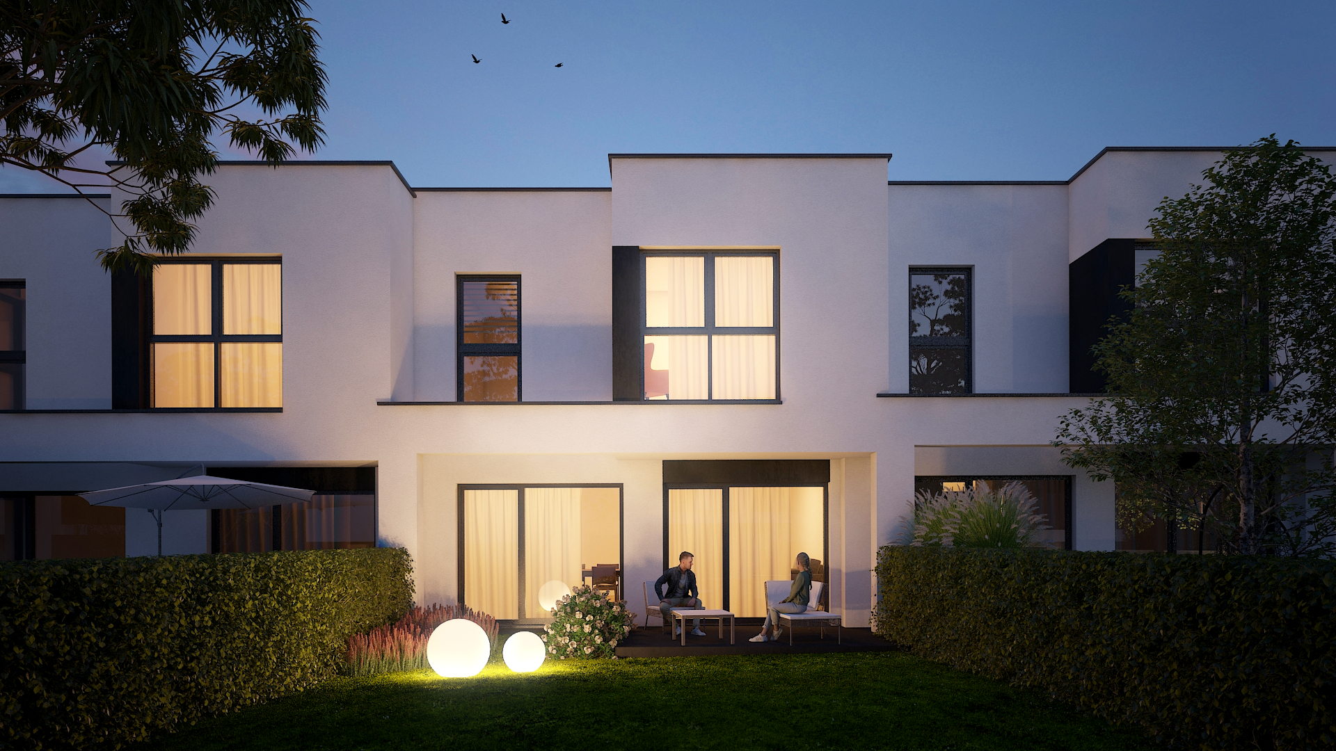 Dodajmy do tego wysublimowane wzornictwo, rozkłady pozwalające mieszkać niezwykle wygodnie oraz  bardzo duże przeszklenia, a tworzy nam się obraz miejsca niezwykłego. Przewidzieliśmy również całościowe ogrzewanie podłogowe w każdym z domów, a także pompy ciepła jako źródło ogrzewania, czyli większe bezpieczeństwo energetyczne oraz bardziej ekologiczna energia.